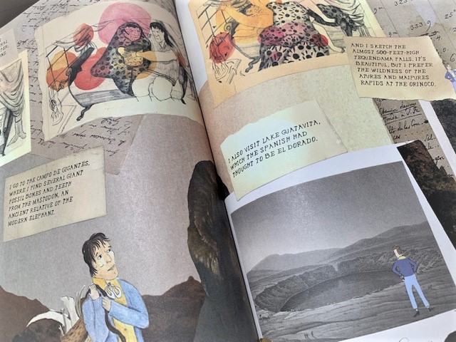 The book is an over-sized hardback, printed on quality paper. It's a joy to hold and Melcher's collages are glorious. She used many of Humboldt's maps, engravings and illustrations to create the backdrops. Letters, diary entries, notes and sketches, herbarium specimens are also superimposed into many of the pages. There's a lot to look at in these details. It was a great way to present some of the information.